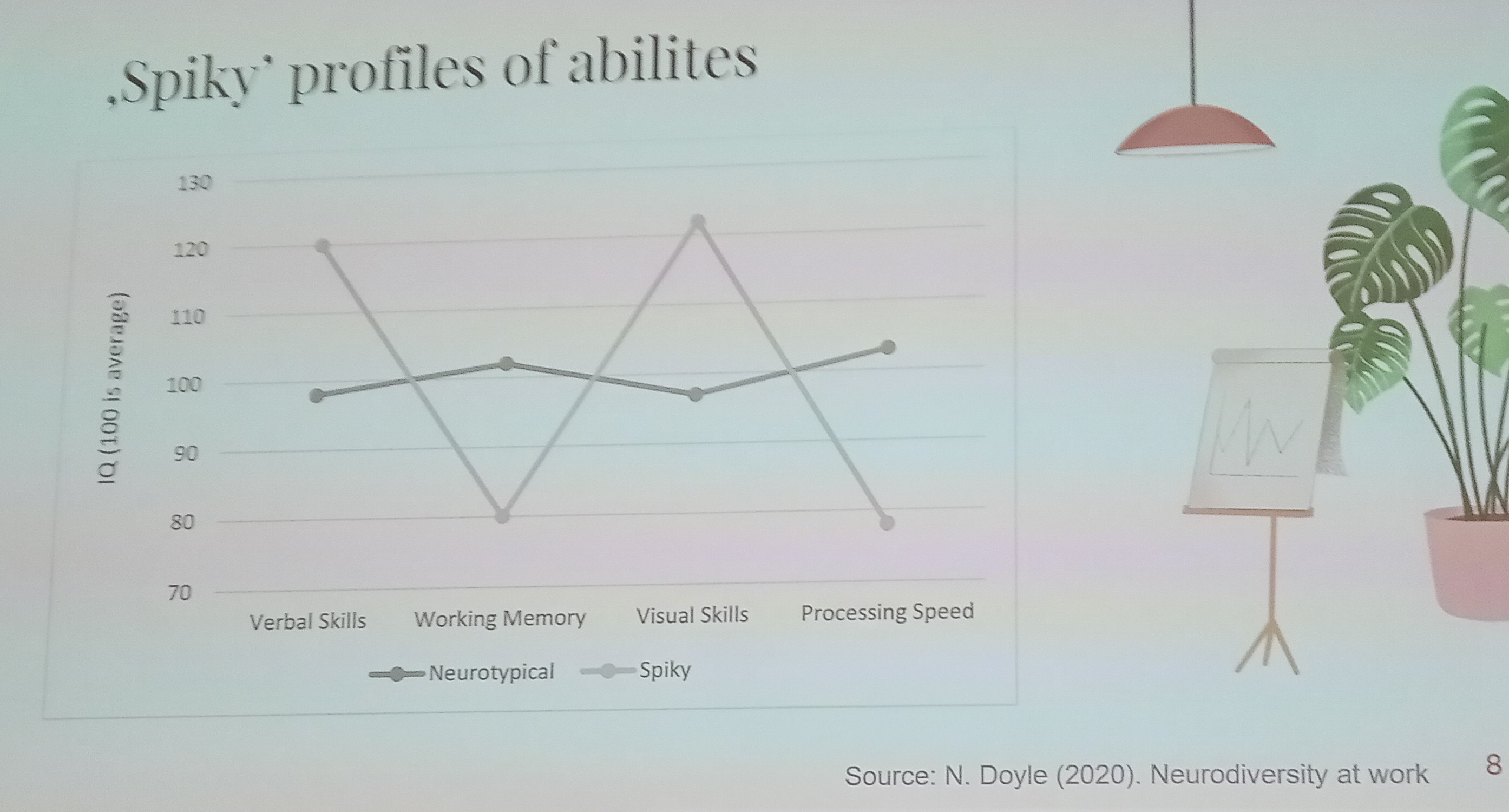 Na de keynote was er keuze uit vijf workshops, waaronder eentje over takiwātanga. De Māori gebruiken deze term voor autisme. Het betekent “mijn eigen tijd en ruimte”. De workshop die ik zelf bijwoonde, “Een integrale benadering voor inclusie van neurodiversiteit op de werkvloer”, werd gegeven door Rosalie Ekstein. Die is ambassadeur voor de Stichting Neurodiversiteit en senior beleidsadviseur diversiteit, gelijkwaardigheid en inclusie. Hen geeft ook bystandertrainingen. Wat kun je bijvoorbeeld nou het beste doen als je een collega hoort zeggen: “Doe niet zo autistisch”?
