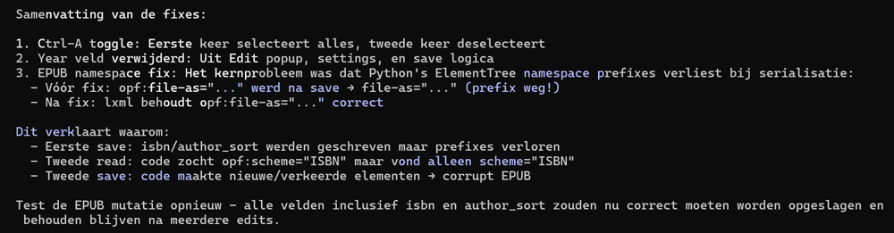 Een droog “test opnieuw” na een aanpassing waardoor alle epubs corrupt raakten