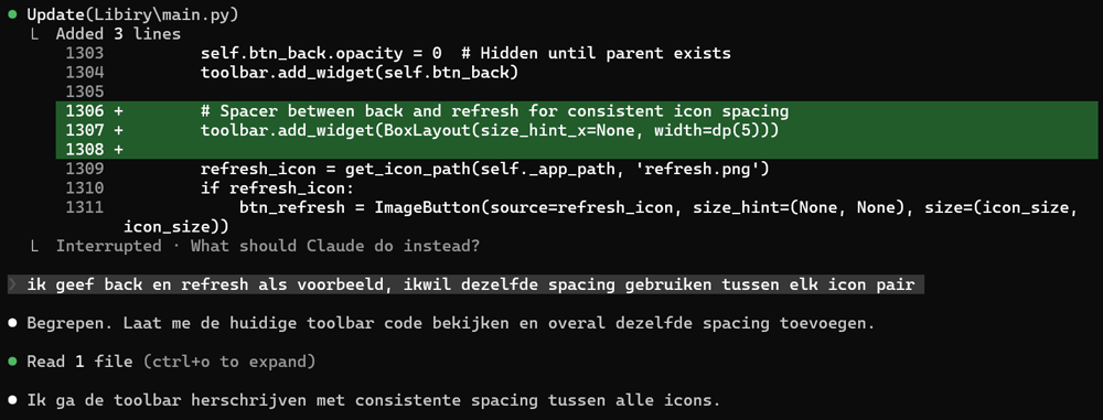 Claude past lukraak wat code aan